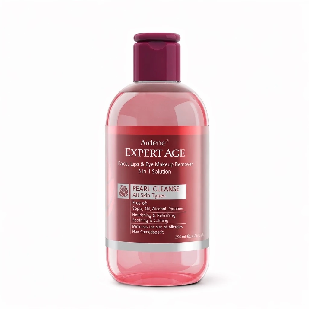 محلول پاککننده آرایش آردن Expert Age Pearl Cleanse یک میکاپ ریموور حرفهای سهکاره (Face, Lips & Eyes) از لاین تخصصی Expert Age است که برای پاکسازی کامل آرایش صورت، چشم و لب طراحی شده است. این محصول با عملکرد 3 in 1 Solution بدون نیاز به شستشوی سنگین، آلودگیها، چربی اضافی و حتی آرایشهای ماندگار را بهطور مؤثر پاک میکند. فرمولاسیون فاقد صابون، روغن و الکل آن، ضمن پاکسازی کامل، از خشکی و تحریک پوست جلوگیری کرده و حس طراوت و سبکی ایجاد میکند. محلول پاککننده آرایش آردن Expert Age Pearl Cleanse برای انواع پوست مناسب بوده و با خاصیت Non-Comedogenic از انسداد منافذ جلوگیری میکند؛ بنابراین انتخابی ایمن و حرفهای برای روتین روزانه پاکسازی است.