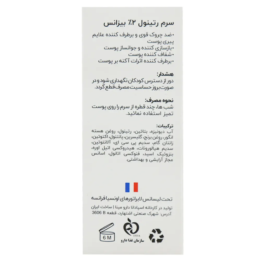 - سرم رتینول ۲ درصد بیزانس ضد چروک و جوانساز پوست