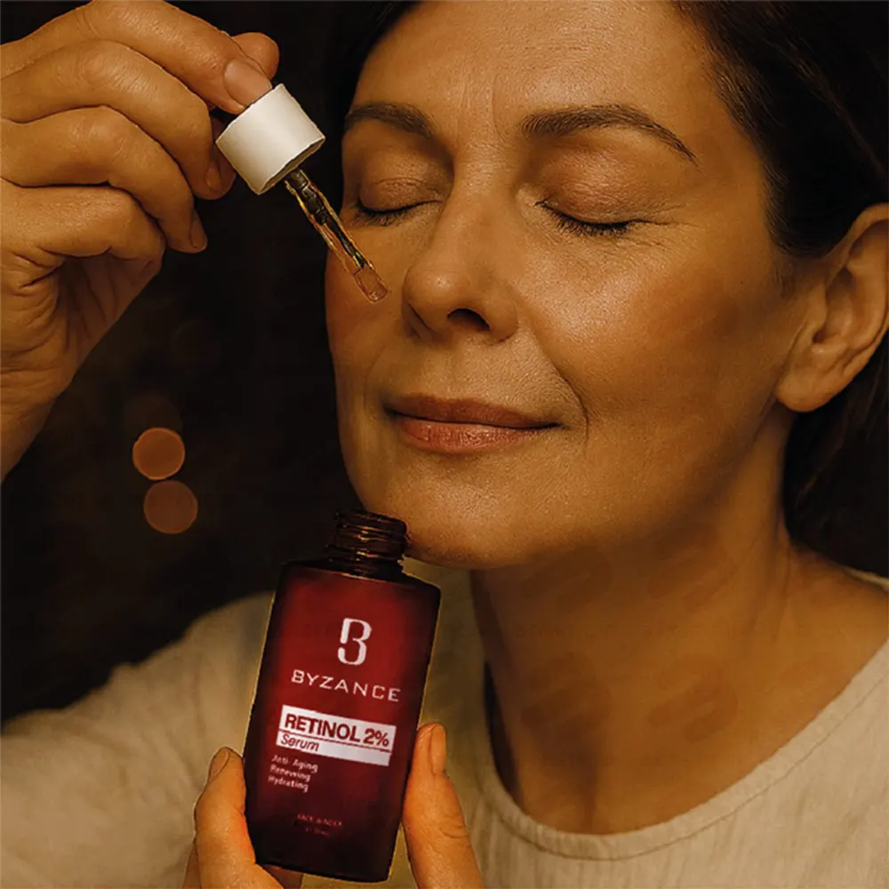 سرم رتینول ۲ درصد بیزانس یک محصول تخصصی ضد پیری است که با فرمولاسیون غنی از رتینول ۲٪، همراه با هیالورونیک اسید دو وزن مولکولی و روغنهای مغذی، باعث رفع چین و چروک، خطوط ریز و تیرگیهای پوست میشود. تکنولوژی لیپوزومال این سرم نفوذ رتینول به عمق پوست را افزایش میدهد و حساسیت آن را کاهش میکند.