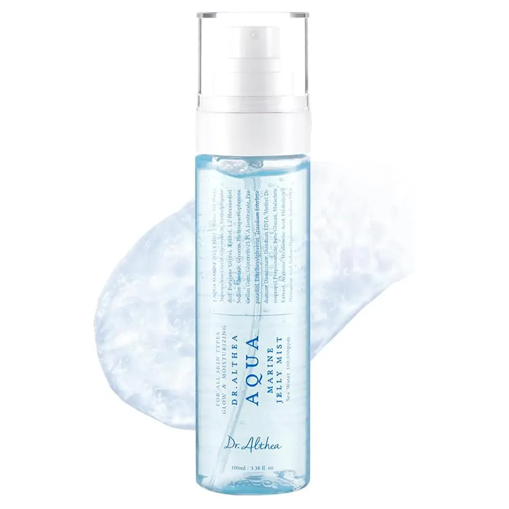 میست ژلهای دکتر آلتیا Aqua Marine یک محصول نوآورانه و پیشرفته از برند کرهای Dr.Althea است که با تکنولوژی منحصربهفرد Jelly-to-Mist طراحی شده است. این محصول درون بطری دارای بافت ژلهای است اما هنگام اسپری شدن به ذرات بسیار ریز میست تبدیل شده و بهسرعت به لایههای عمقی پوست نفوذ میکند.