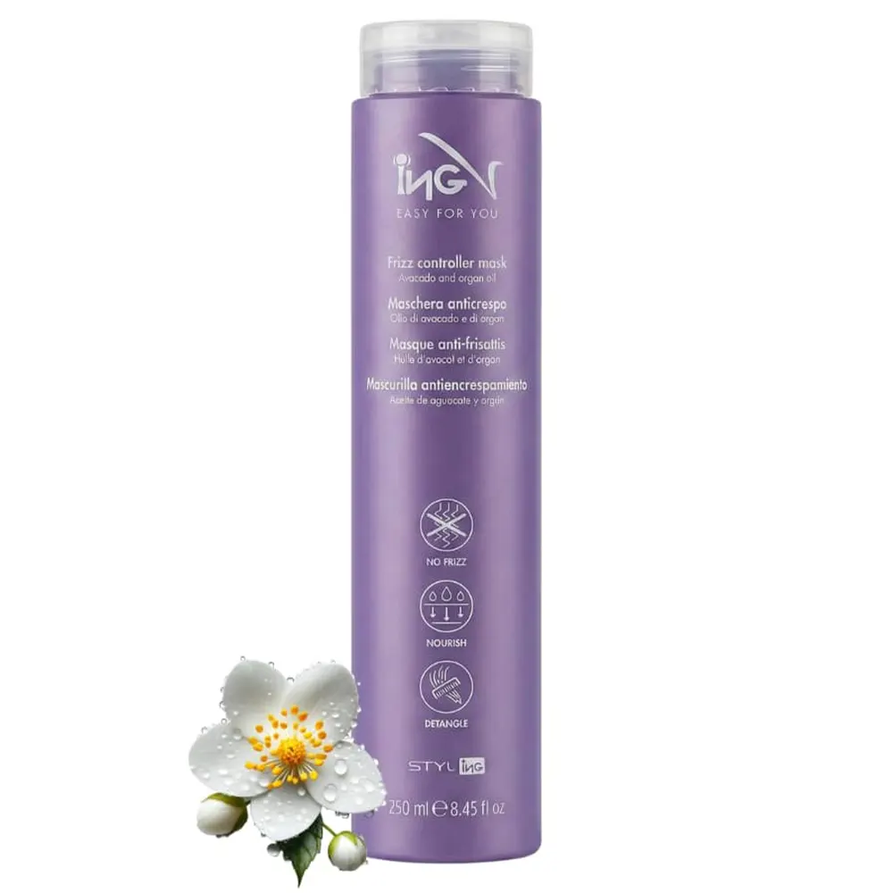 ماسک مو ضد وز آیاِنجی ING Frizz Controller Mask یک ماسک حرفهای از سری STYL-ING برند ایتالیایی ING است که بهطور تخصصی برای کنترل وز، باز کردن گره و افزایش رطوبت موهای سرکش، وز و مجعد طراحی شده است. فرمولاسیون این ماسک شامل ترکیبات مؤثر مغذی مانند روغن آرگان، روغن آووکادو، پروتئینهای هیدرولیزشده و پانتنول است که به بازسازی ساختار مو کمک میکند، موها را نرم و ابریشمی میسازد و درخشندگی طبیعی مو را افزایش میدهد. این ماسک بهطور مؤثر باعث میشود موها آسانتر شانه شوند، وز کاهش یابد و حالتپذیری بهتر شود بدون اینکه حس سنگینی یا چربی ایجاد کند.