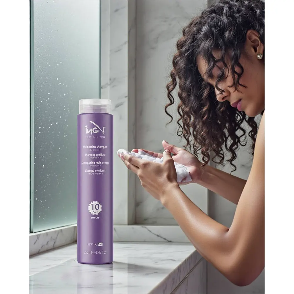 شامپو دهکاره مولتیاکشن آیانجی یک شامپوی حرفهای ایتالیایی است که با فرمول مراقبتی چندمنظوره طراحی شده تا نیازهای مختلف مو را در یک محصول واحد برآورده کند. این شامپو با بهرهگیری از ترکیبات فعال طبیعی مانند روغن آرگان، عصاره ابریشم، عصاره جلبک دریایی، پروتئین گندم، روغن ماکادامیا و روغن بذر کتان، عملکردهای متعددی از پاکسازی ملایم تا تغذیه عمیق موها ارائه میدهد. این محصول برای افرادی که به دنبال مراقبت کامل از مو، تقویت، درخشندگی و رفع آسیبهای محیطی هستند، گزینهای حرفهای و همهجانبه محسوب میشود.