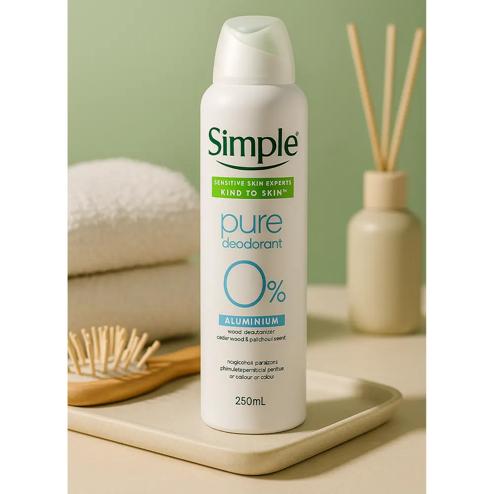 اسپری دئودورانت Pure 0% Aluminium از برند Simple، محصولی مینیمال و کاملاً ملایم برای افرادی است که به دنبال کنترل بوی بدن بدون ایجاد اختلال در تعریق طبیعی هستند. این دئودورانت با فرمولاسیونی ساده و سازگار با پوست، بدون استفاده از نمکهای آلومینیوم، الکل، عطر مصنوعی، رنگ و پارابن طراحی شده و گزینهای ایدهآل برای پوستهای حساس محسوب میشود.